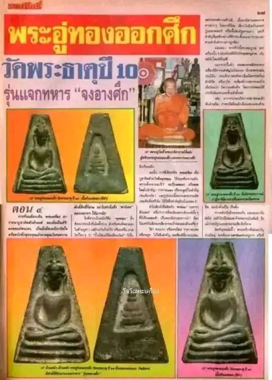 .#พระผงสุพรรณจงอางศึกหลังเจดีย์ #พระอู่ทองออกศึกวัดพระศรีรัตนมหาธาตุสุพรรณบุรีปี2510 ถึง 2511 #เนื้อสวยเดิมพระดีพิธีปลุกเสกใหญ่ #มีพระเกจิอาจารย์ร่วมปลุกเสกถึง69รูปอาทิเช่น #หลวงพ่อมุ่ยวัดดอนไร่ #หลวงพ่อแดงวัดทุ่งคอก #หลวงพ่อกวยวัดโฆษิตาราม #หลวงพ่อเงินวัดดอนยายหอม #ใช้แจกทหารผีออกรบสุดยอดประสบการณ์แคล้วคลาด #หลวงพ่อมุ่ยวัดดอนไร่ปลุกเสกเมื่อปี2510 ประเทศไทยได้ส่งกองกำลังทหาร รุ่นจงอางศึก เข้าร่วมรบสมทบกับกองกำลังสหประชาชาติ ในสงครามเวียดนาม ในการนี้ หลวงปู่โพธิ์ เจ้าอาวาสวัดพระศรีรัตนมหาธาตุ จ.สุพรรณบุรี ซึ่งเป็นพระเกจิอาจารย์ชื่อดัง ได้จัดสร้าง พระอู่ทองออกศึก แจกแก่ทหารรุ่นจงอางศึกนี้โดยเฉพาะ #โดยนำเนื้อดินพระชำรุดแตกหักจากกรุต่างๆมาเป็นส่วนผสมหลักเช่น #พระผงสุพรรณกรุวัดพระธาตุ, #พระกรุวัดพระรูป #พระกรุวัดลำปะซิว #พระกรุวัดบ้านกร่าง, #พระกรุถ้ำเสือ #พระกรุวัดบางยี่หน #และพระเนื้อดินชำรุดแตกหักของพระเกจิอาจารย์ต่างๆอีกจำนวนมาก พุทธลักษณะ ใช้พิมพ์พระผงสุพรรณ ด้านหลังเป็นรูปองค์พระปรางค์ อันเป็นสัญลักษณ์ประจำวัด และเป็นสถานที่พบพระผงสุพรรณ และพระเนื้อชินพิมพ์ต่างๆ พิธีมหาพุทธาภิเษก เมื่อวันที่ 13 พฤษภาคม 2510 โดยมีพระคณาจารย์ชื่อดังเมืองสุพรรณนั่งปรกปลุกเสกจำนวน 69 รูป พิธีใหญ่ เกจิร่วมปลุกเสกมากมาย เช่น หลวงพ่อมุ่ย วัดดอนไร่ หลวงพ่อแดง วัดทุ่งคอก หลวงพ่อกวย วัดโฆษิตาราม หลวงพ่อเงิน วัดดอนยายหอม แจกให้ทหารไปสงครามเวียดนามครับ.....สนใจอยากได้ไว้บูชาโทรถามโจโฉครับ....089-9043162...#พระเกจิคณาจารย์ชื่อดังนั่งปรกปลุกเสก๖๙รูปดังมีรายพระนามต่อไปนี้ ๑. หลวงพ่อมุ่ย วัดดอนไร่ จ.สุพรรณบุรี ๒. หลวงพ่อถิร วัดป่าเลไลยก์ จ.สุพรรณบุรี ๓. หลวงพ่อขอม วัดไผ่โรงวัว จ.สุพรรณบุรี ๔. หลวงพ่อคำ วัดหน่อพุทธางกูร จ.สุพรรณบุรี ๕. หลวงพ่อใจ วัดวังยายหุ่น จ.สุพรรณบุรี ๖. หลวงพ่อเปลื้อง วัดสุวรรณภูมิ จ.สุพรรณบุรี ๗. หลวงพ่อแต้ม วัดพระลอย จ.สุพรรณบุรี ๘. หลวงพ่อดี วัดพระรูป จ.สุพรรณบุรี ๙. หลวงพ่อโต๊ะ วัดลาดตาล จ.สุพรรณบุรี ๑๐. หลวงพ่อเจริญ วัดธัญเจริญ จ.สุพรรณบุรี ๑๑. หลวงพ่อบุญ วัดโคกโคเฒ่า จ.สุพรรณบุรี ๑๒. หลวงพ่อฮวด วัดดอนโพธิ์ทอง จ.สุพรรณบุรี ๑๓. หลวงพ่อเก็บ วัดดอนเจดีย์ จ.สุพรรณบุรี ๑๔. หลวงพ่อดี วัดท่าเจริญ จ.สุพรรณบุรี ๑๕. หลวงพ่อเหมือน วัดไทรย์ จ.สุพรรณบุรี ๑๖. หลวงพ่อเมี้ยน วัดโพธิ์เจริญ จ.สุพรรณบุรี ๑๗. หลวงพ่อเจิม วัดกุฎีทอง จ.สุพรรณบุรี ๑๘. หลวงพ่อเลียบ วัดช่องลม จ.สุพรรณบุรี ๑๙. หลวงพ่อวิจิตร วัดบ้านทึง จ.สุพรรณบุรี ๒๐. หลวงพ่อแขก วัดหัวเขา 